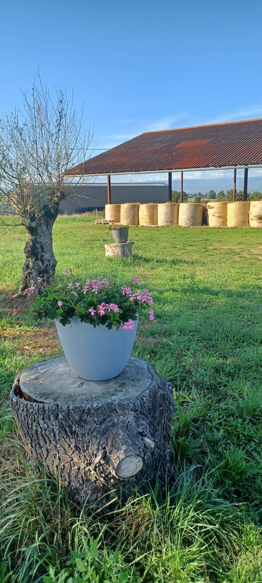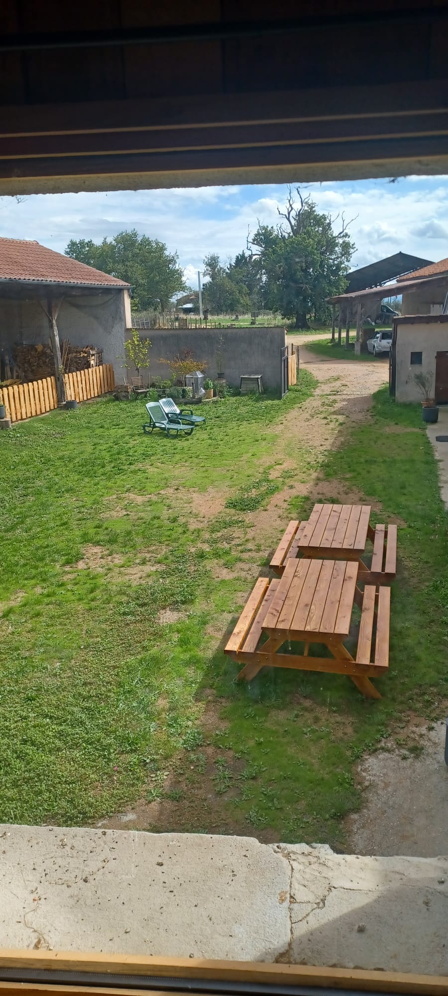 A l’extérieur, une grande terrasse avec tables de pique-nique, barbecue et vue imprenable sur les monts du Forez…