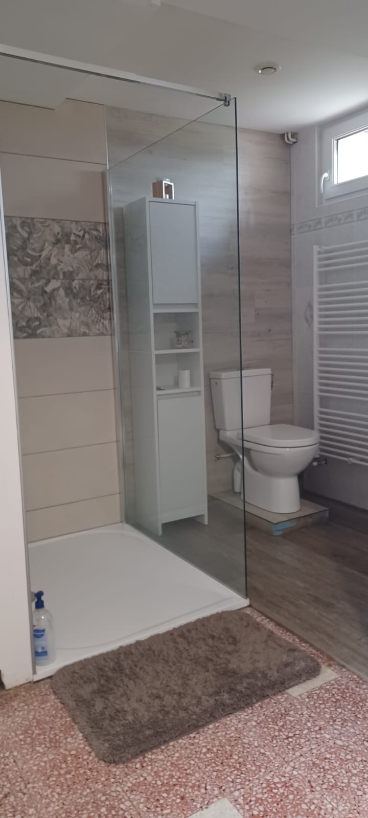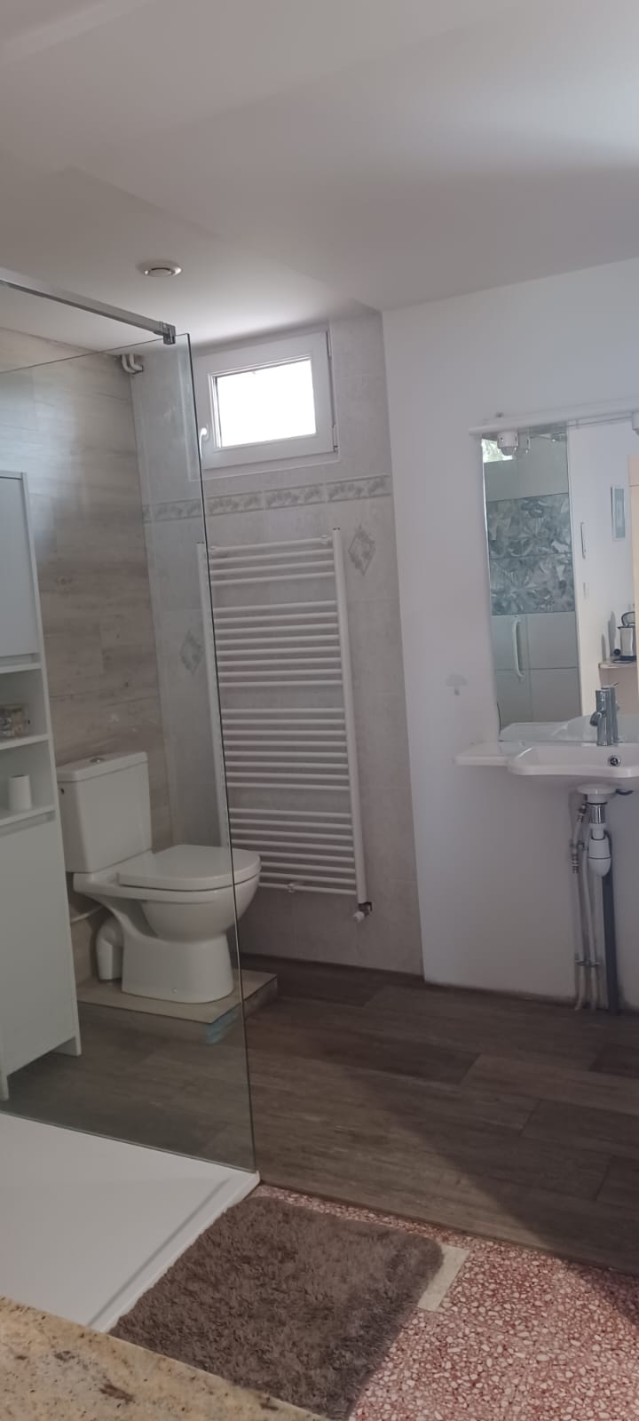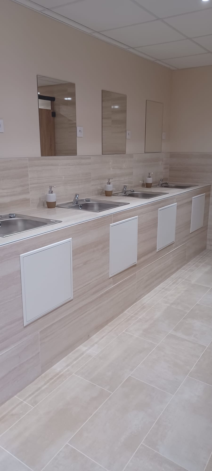 Au rez-de-chaussée ; des sanitaires collectifs composés de 4 douches, 4 lavabos, 1 évier et 2 toilettes sèches