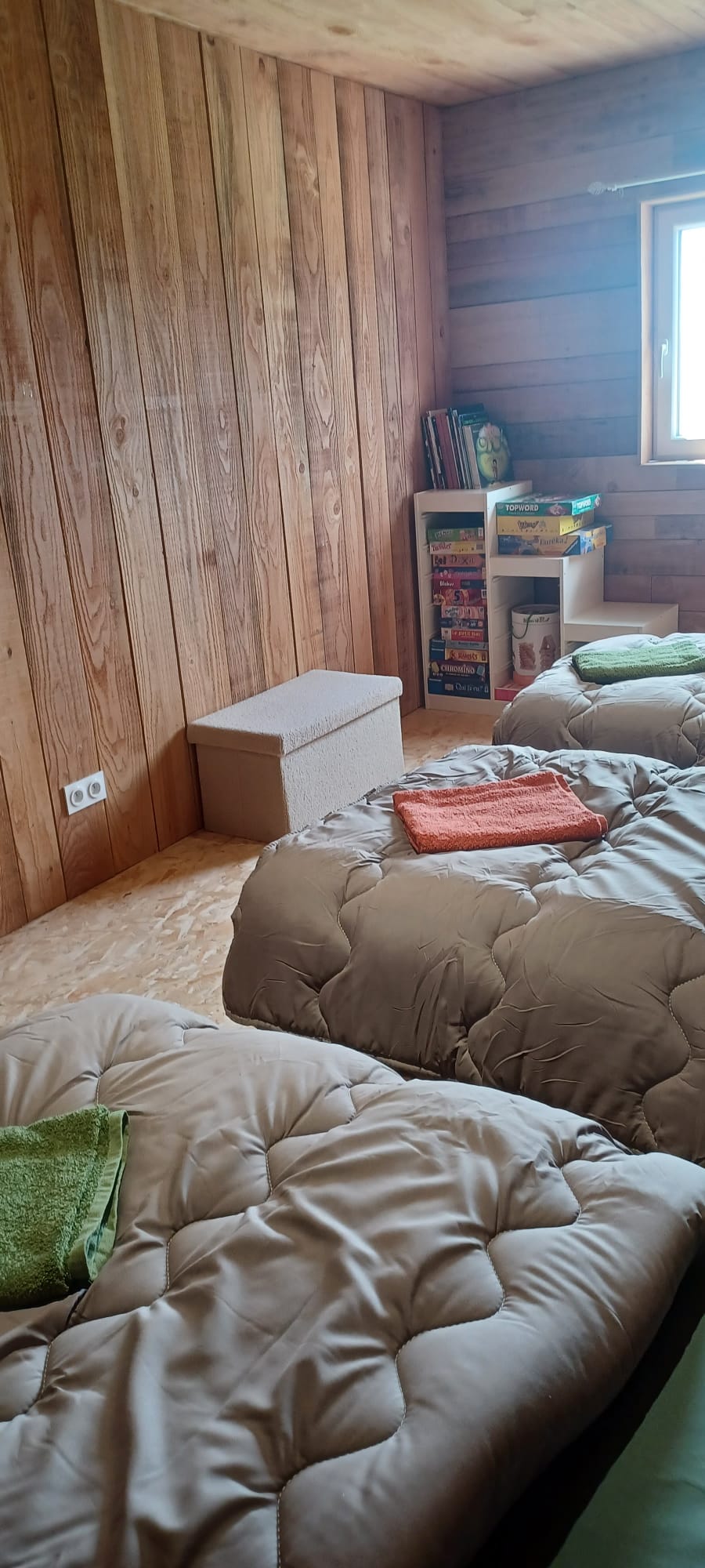 Nous avons choisi de réaliser ce gîte de manière écoresponsable, avec des matériaux naturels comme le bois, la mise en place de composteurs, un assainissement avec filtre à roseaux plantés et l’installation de toilettes sèches.