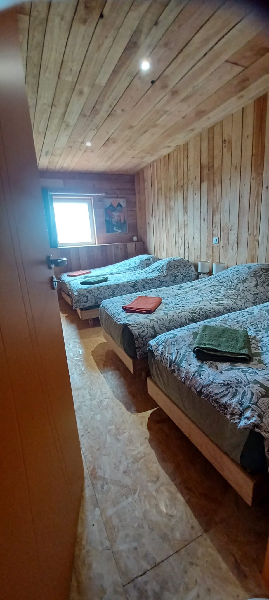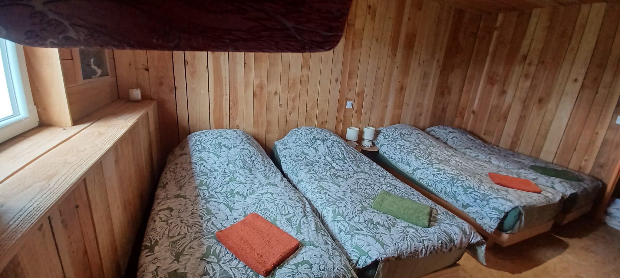 A l’étage, 1 cuisine d’appoint (vaisselle, casseroles, bouilloire, cafetière, thé et café à disposition), 4 chambres, 1 WC sec sur une surface de 120m2.